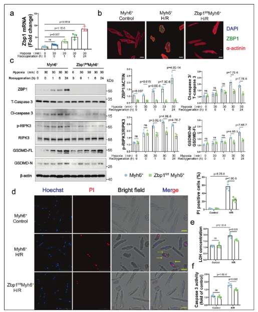 2. ZBP1缺失減輕H/R誘導的心肌細胞PANoptosis